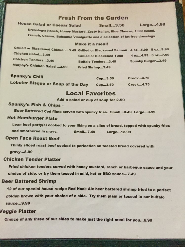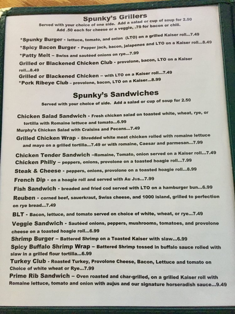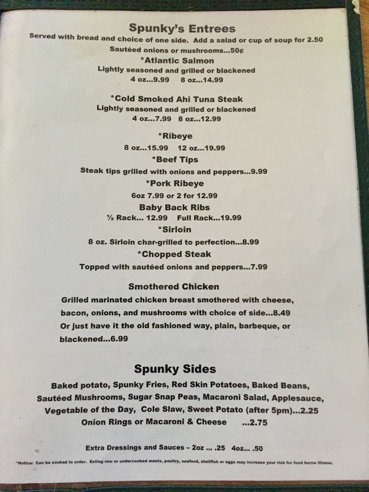 Spunky McDoogle's Menu (2025 Update)